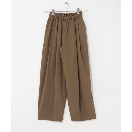 ウエスト部分がすべてゴム仕様なのでストレスフリーな穿き心地のタックパンツ。ウエストギャザーにタックも入れることできちんと感もありつつ、着心地の良さを一番に考えたデザイン。ウエスト部分は裏のドロストリングでサイズ調整も可能です。タイト目なトップスをインしてすっきりと女性らしい雰囲気にはもちろん、オーバーシルエットのトップス合わせでカジュアルな着こなしにもおすすめ。