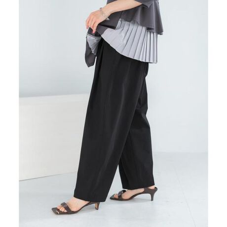 ウエスト部分がすべてゴム仕様なのでストレスフリーな穿き心地のタックパンツ。ウエストギャザーにタックも入れることできちんと感もありつつ、着心地の良さを一番に考えたデザイン。ウエスト部分は裏のドロストリングでサイズ調整も可能です。タイト目なトップスをインしてすっきりと女性らしい雰囲気にはもちろん、オーバーシルエットのトップス合わせでカジュアルな着こなしにもおすすめ。