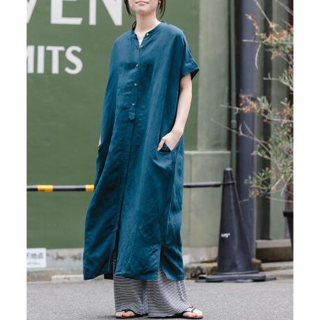 すっきりとしたバンドカラーでゆとりのあるシルエット、二の腕を上手に隠してくれるスリーブなどこだわりが詰まっています。裾にスリットが入っているので足捌きも良く、デニムなどのパンツ合わせがおすすめ。