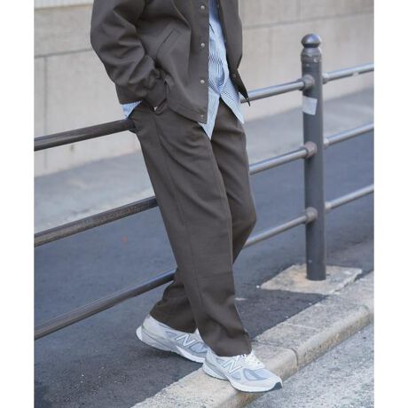 ドライタッチでさらっとした穿き心地が魅力の、高機能イージートラウザー。接触冷感や速乾性、シワになりにくいイージーケア仕様で、気温差のある春から快適に着用できます。ウエストはバックゴム仕様でリラックス感がありながら、フロントはベルトループ付きのきれいめな印象。ワンタック入りのテーパードシルエットとセンタープレスが脚をすっきり見せ、春のオンオフスタイルに自然と馴染む一本です。