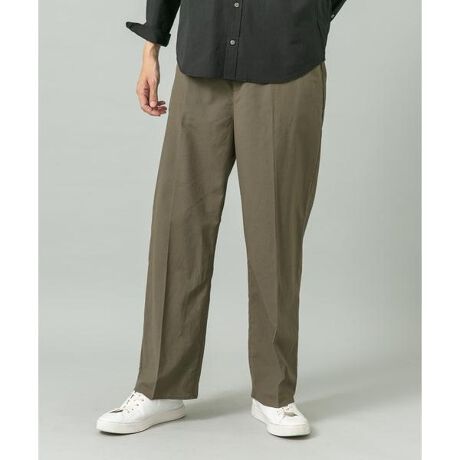 毛羽立ちを抑えた滑らかな表面感が上品な印象を与えつつ、ウエストはゴム&紐のイージー仕様、1タックにセンタープレスを入れたストレートシルエットがカジュアルな装いに品格をプラスします。