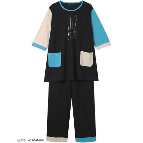 [型番:HDT207]・綿100%の天竺素材を使用・切り替えの配色と、胸もとのうさぎのハンドプリントがデザインポイント※お洗濯は、必ず「取扱い表示」にしたがってください。