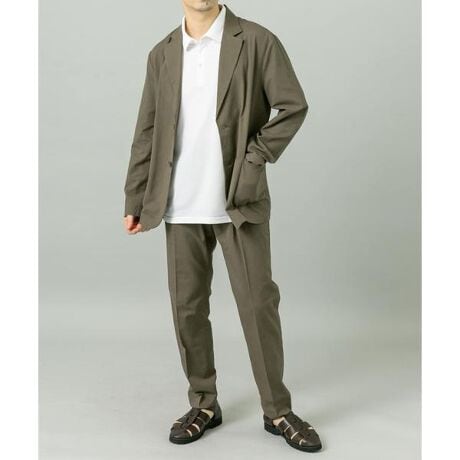 ポリエステル糸を芯にリネンを巻きつけた開発素材を採用し、『防シワ性』を向上させたイージーケア機能と、リネン特有の清涼感を両立させた一着。