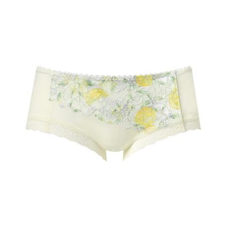 ●はきごこちがよい バックはやわらかく伸びるナイロンベア天竺素材で、はきごこちがよい「重力ケアブラ ノンワイヤー(BXB194)」とペアコーデが楽しめるショーツ。あさめのはきこみ丈は、すっきりとした印象で、甘くなりすぎるのが苦手な方におすすめです。デザインはトレンド感のある花柄からシックなツートーンタイプまで多彩にラインアップ。※お洗濯は、必ず「取扱い表示」にしたがってください。