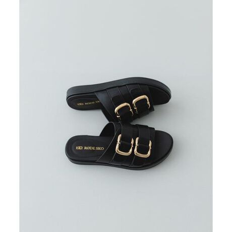 大人っぽいゴールドバックルが上品に輝く、ダブルベルトサンダル