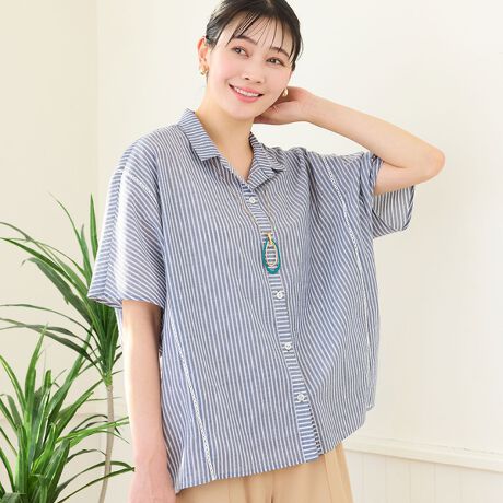 【洗える・3Lサイズあり】ストライプワイドシャツ