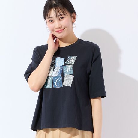 フロントにmisselの夏のテーマである「BOHO CHIC」と入れました。デニム柄のパッチワーク風のプリントに、ラインストーンを散りばめたこだわりの加工が目を惹きます。