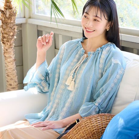 リラックス感のあるシルエットが心地よく、夏のお出かけに活躍してくれるイチオシのブラウスです。
