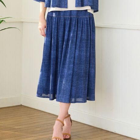 柔らかく伸びのいいチュールにデニム柄をプリントしたスカート。