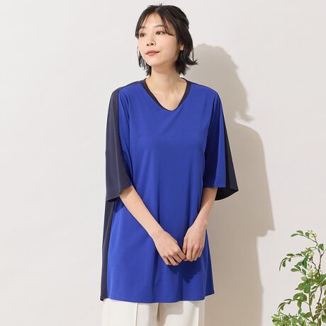■接触冷感で夏に嬉しい、バイカラー切り替えチュニック■