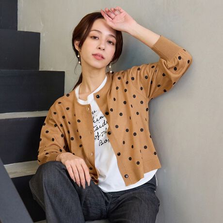 ドットがかわいいドライタッチカーディガン