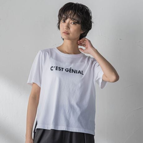 ジャケットやカーデのインナーに合わせて、ロゴをアクセントに。