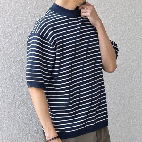 カジュアルでもビジネスでも◎夏でも快適に着れるモックネックのサマーニットTシャツ
