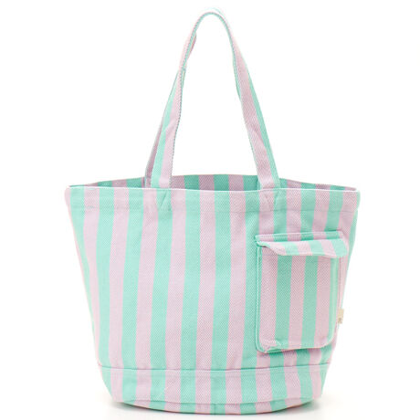 フラップ付きルーポケットには携帯など小物の収納に。内側には、ボトルホルダー、つりポケット付きで荷物も整理整頓ができます。定番ストライプでありながら、