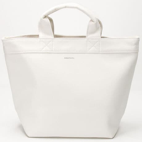 しっかりしたつくりで自立するシルエット。カジュアルなデザインながら合成皮革ならではのきちんと感もあり、幅広いシーンで活躍してくれるトートバッグです。