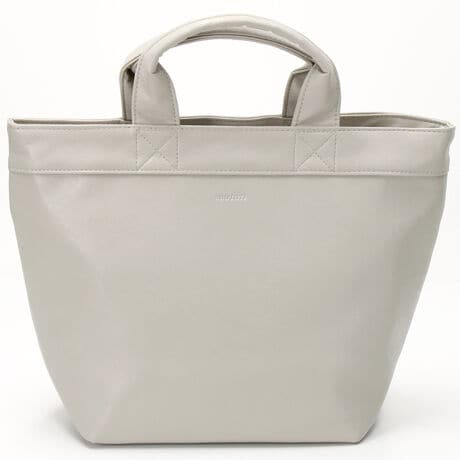 しっかりしたつくりで自立するシルエット。カジュアルなデザインながら合成皮革ならではのきちんと感もあり、幅広いシーンで活躍してくれるトートバッグです。