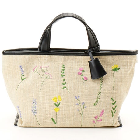 [型番:3586]ルートートのLT.デリ.フラワー-A【夏にぴったりな花刺しゅう入りトートバッグ】春夏らしい風合いの素材に鮮やかなカラーをあしらった目を惹くトート。幅広のデリのサイズ感で収納力が高く、デイリーに取り入れやすい大人なアイテム。パイピングとキークロシェットのデザインがアクセントの商品です。着こなしにワンポイントプラスしてくれます。麻風のラメが入った生地に花柄の刺しゅうが大人かわいいフラワー。