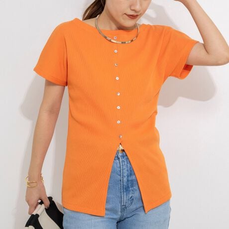 ・凹凸がしっかりあるリブ素で、肌に張り付きにくく、夏も着やすい一枚