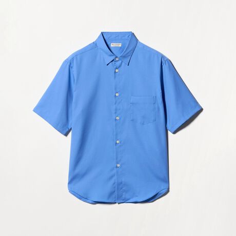 きれいめな双糸使いのピンオックス生地を採用し、ほどよいハリと上品な光沢が、シャツスタイルに高級感を添えます。