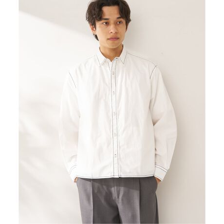 存在感のあるヘビーステッチが特徴のクロップド丈シャツです。