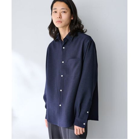 シンプルなレギュラーカラーと胸ポケット付きのデザインで、オンオフ問わず取り入れやすい一枚です。