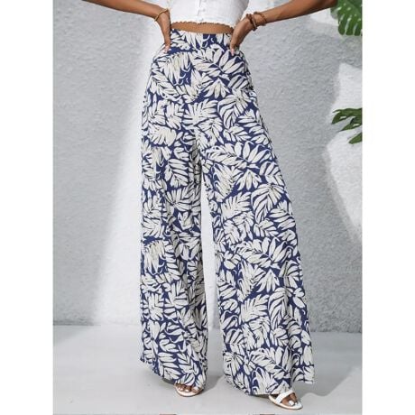 -南国リーフ柄が目を惹くボタニカルワイドパンツ。