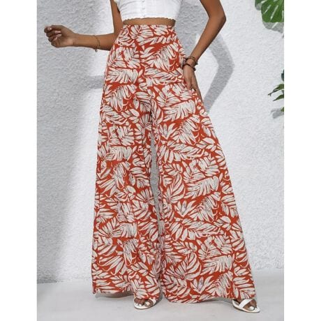 -南国リーフ柄が目を惹くボタニカルワイドパンツ。