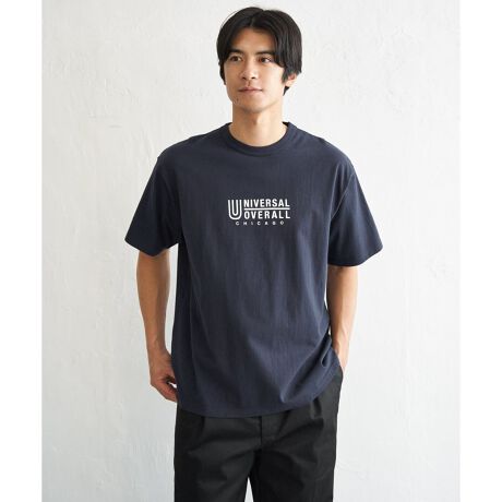 フロントに「UNIVERSAL OVERALL」のプリントを施したロゴプリントT。