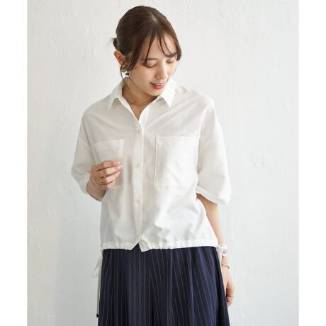 裾のドローストリングがトレンド感をプラスし、シルエットのアレンジも楽しめるシャツ。