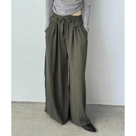 落ち感のあるとろみ素材が魅力のイージーワイドパンツ。