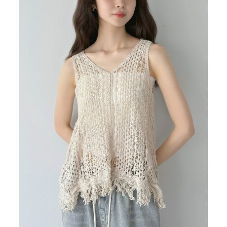 透かし編みフリンジトップス
