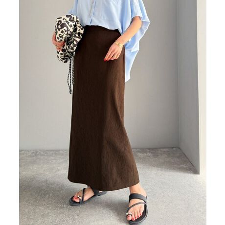 ストンと落ちるIラインシルエットが脚長効果を発揮し、バックスリットで歩きやすさも◎