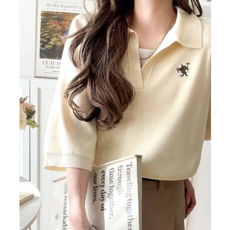 ミラノリブ編地のしっかり感とさらっとした肌ざわりが魅力のポロニット。