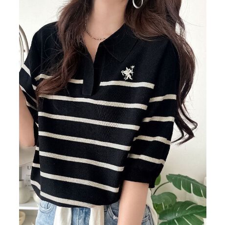 抜け感のあるスキッパー衿のポロニット!