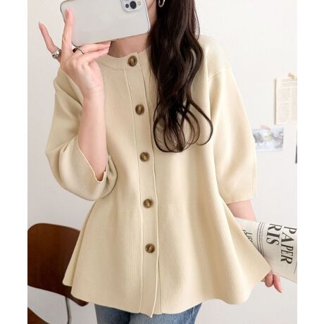 シンプルながらも女性らしいデザインのペプラムカーディガン♪