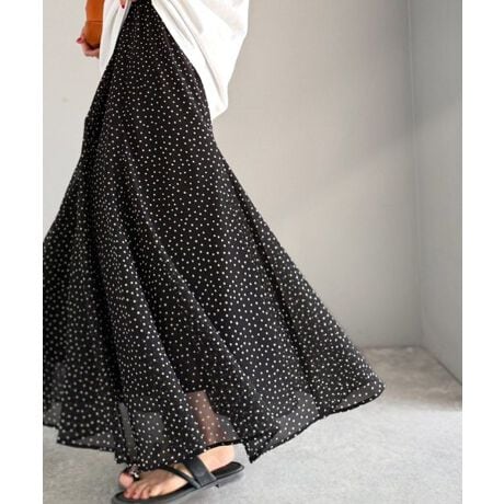 歩くたびにドラマティックに揺れる、シアー素材のフレアスカート。