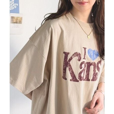 目を惹くお土産風のグラフィックに、カスレ加工を施して古着のような風合いに。