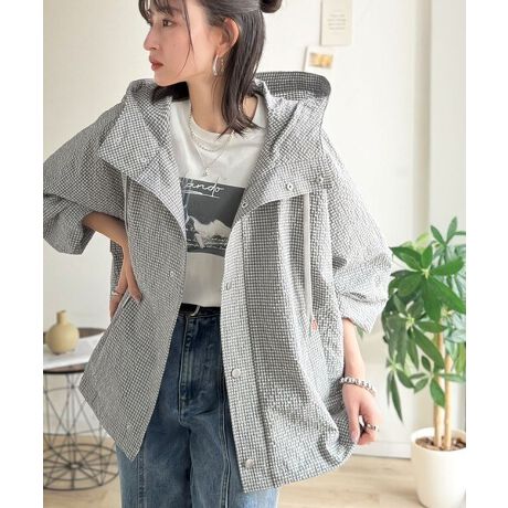 涼し気なサッカー素材。ベージュ・グレーのチェック見えも◎