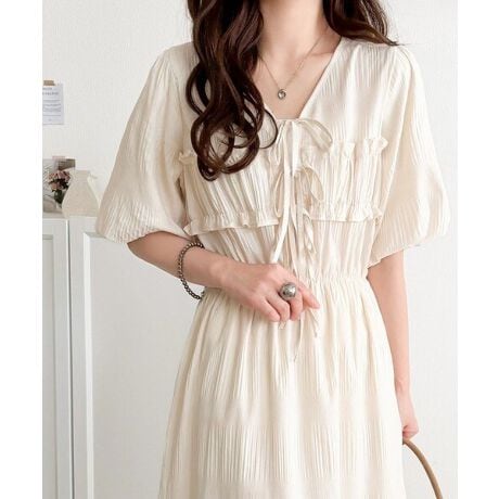 リボンデザインのロングワンピース。