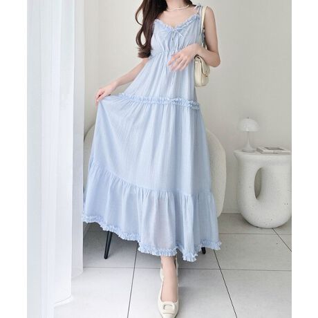 【mily bilet】華やかな一着。前後2wayフリルデザインティアードキャミワンピ (ロング丈)
