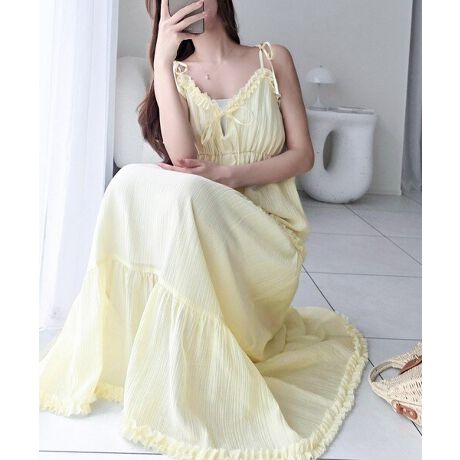 【mily bilet】華やかな一着。前後2wayフリルデザインティアードキャミワンピ (ロング丈)