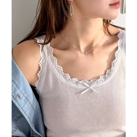 レースとリボンの繊細なディテールで魅せる優秀リブキャミ♪