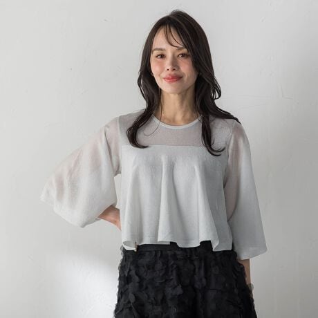 華奢なラメ感が上品で、落ち感と程よいシアー感のある素材です。