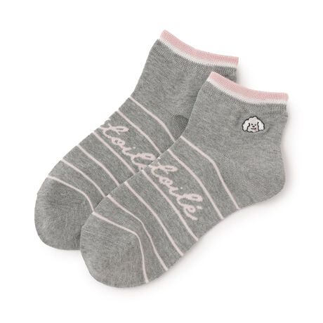 犬刺しゅう+ライン入り短丈ソックス