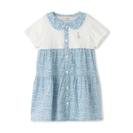 シンプルな無地と花柄の布帛をドッキングしたワンピースです。