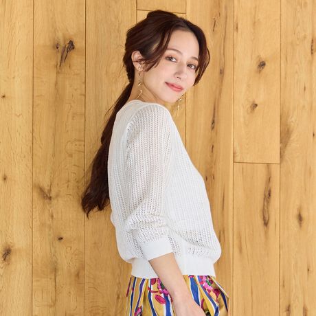 清涼感がありドライタッチな綿混の編地。透け感のある編地で涼し気。丸みのあるシルエットで可愛らしく女性らしいニットカーディガン。