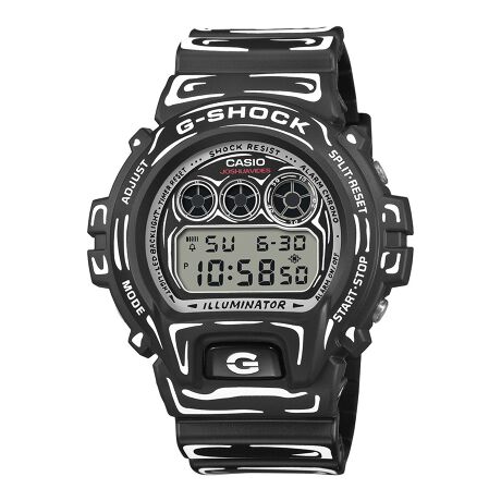 フロントボタンと三つ目液晶が特徴の「DW-6900」に、Joshua Videsならではのモノトーンを基調としたコミックタッチのグラフィックをフェイス部からベゼル、バンドまで時計全体に配しました。