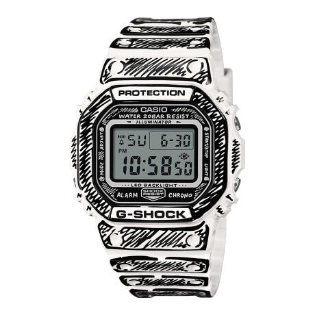 スクエアフォルムが人気の「DW-5600」に、Joshua Videsならではのモノトーンを基調としたコミックタッチのグラフィックをフェイス部からベゼル、バンドまで時計全体に配しました。