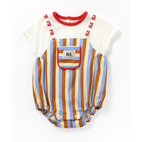 apres les cours(アプレレクール)のカバーオール・ロンパース「肩紐ロゴサロペットドッキングロンパス」は、やさしいニュアンスのナチュラルなデザイン。ベビーギフトや出産祝いの主役にも♪