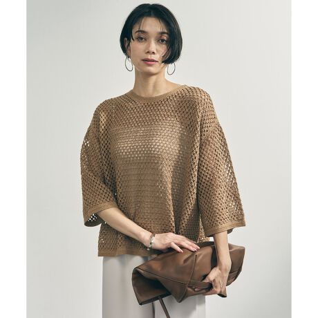 ■デザイントレンドを感じさせる、クロシェレースのプルオーバー。ヴィンテージライクな雰囲気のクロシェレースが華やかさをプラスし、一枚で着映えるアイテムです。肘が隠れる6分袖で、春から秋口まで長くご着用いただけます。ほっこりしないシンプルなクロシェレース柄で、デニムを合わせたカジュアルスタイリングはもちろん、きれいめなパンツ合わせもおすすめです。